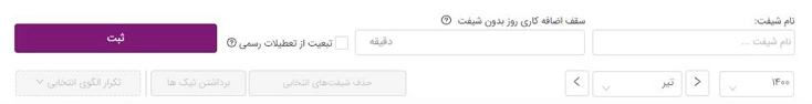 - نام شیفت: یک نام به دلخواه برای شیفت کاری تعریف میکنید.